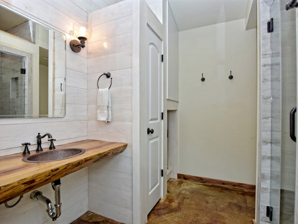 Looking for the perfect river cabin? Look no more! Rustic meets elegance here with luxurious furnishings, a fully equipped kitchen with a dishwasher, large gathering table and a GREAT outdoor riverfront space. Lower floor houses the amazing kitchen area & living room with a large wall-mounted Smart TV, a full bath including walk-in shower & a King bedroom. The upper floor consists of a King bedroom w/ ensuite bath, a bedroom w/ a queen bed, a full bathroom in the hallway & a washer/dryer.