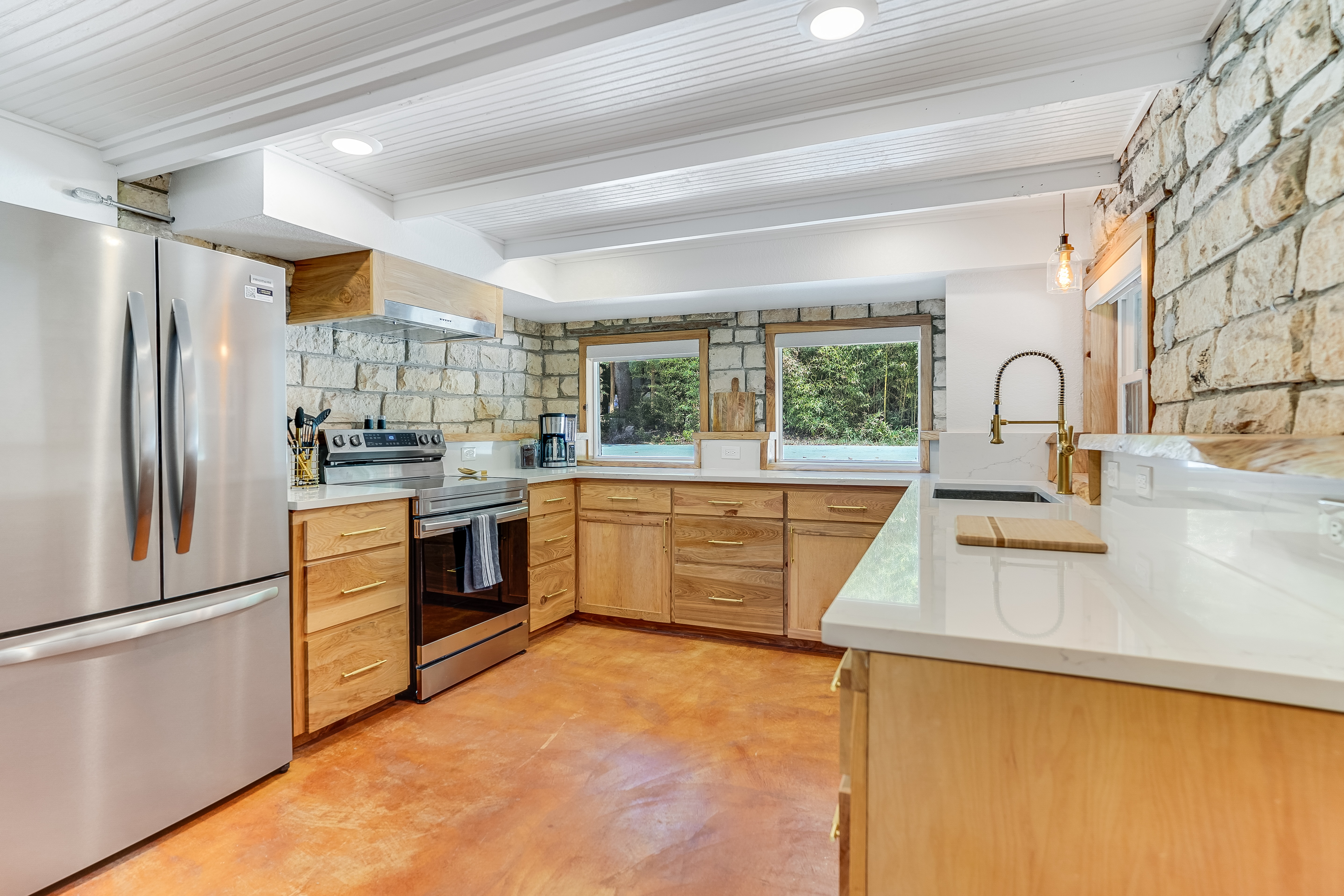 Make yourself at home in our amazing cabin, Samatanga. This gorgeous cabin is across a private road from the bank of the Blanco River in Downtown Wimberley and sleeps up to 10 guests. Samatanga is a beautiful three-bedroom cabin with an open-concept living area. In addition, you can take in the gorgeous river views while sipping your morning coffee on the front porch or enjoy a night of s'more making by the firepit.